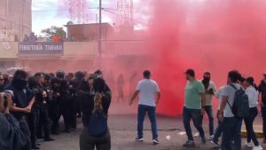 El ambiente en los diferentes puntos donde se concentran los manifestantes es tenso y se agrava ante los actos vandálicos efectuados por los estudiantes normalistas. RED 113 MICHOACÁN/Redacción