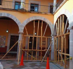 No se atendió nunca y el deterioro empeoró tras el sismo ocurrido en 2022 en Coalcomán, que afectó más aún los daños debilitando más la infraestructura de esta escuela primaria Belisario Domínguez, en que solo se intentó mal apuntalar las partes más debilitadas de la estructura del patio, los arcos y pilares, y no se ejecutó la obra como debía por lo que hay riesgo de derrumbe, además de que PC no acudió a hacer las valoraciones en su momento.