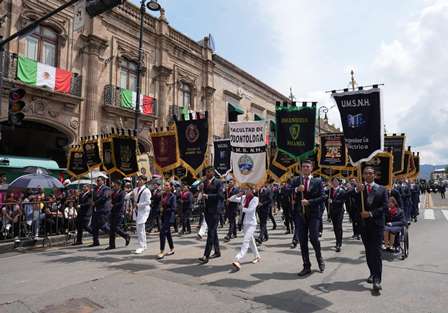 Con templanza, orgullo y gallardía el contingente de la Universidad Michoacana de San Nicolás de Hidalgo (UMSNH) encabezado por la rectora Yarabí Ávila González participó en el desfile cívico con motivo del 214 aniversario de la Independencia de México.