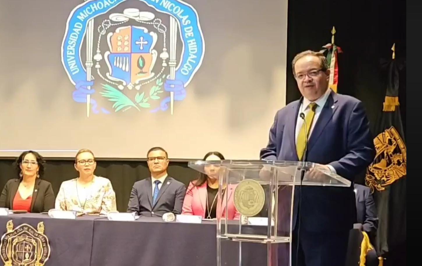 La renovación de este vínculo histórico tuvo lugar esta media mañana en el aula mater del Colegio de San Nicolás donde el rector de la UNAM afirmó que «es una relación a la que le debemos dar continuidad y a la que debemos honrar con trabajo fructífero», y donde procedió a firmar la renovación del convenio junto a la funcionaria nicolaita, ante miembros del gabinete de ambas universidades que ahí se dieron cita.