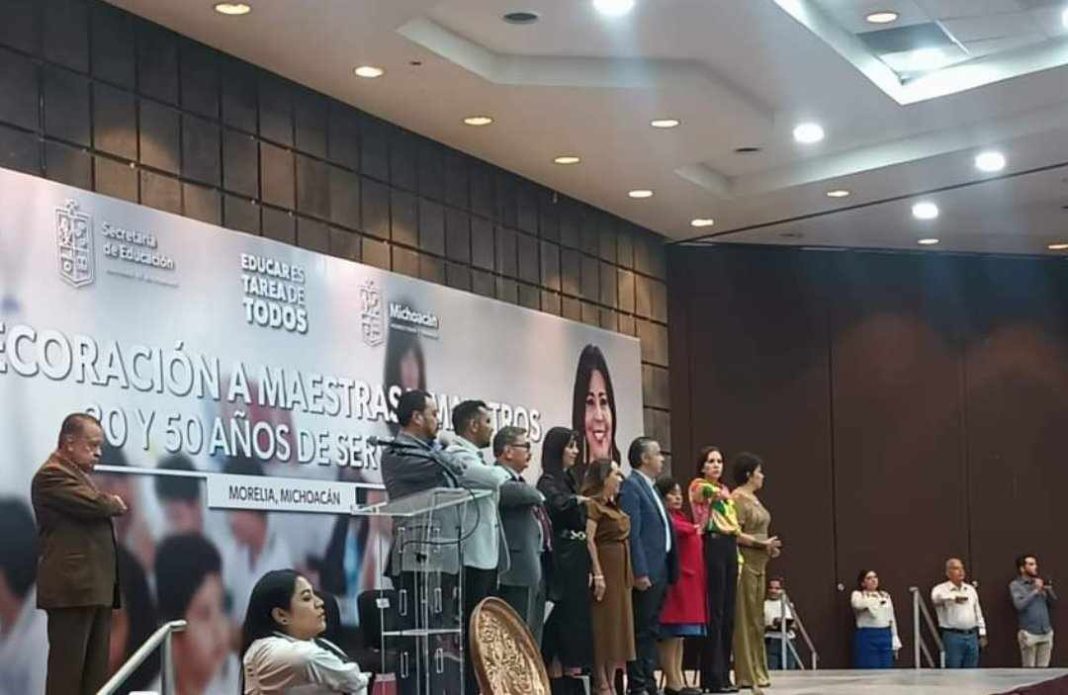 La Secretaría de Educación ha entregado esta mañana reconocimiento a 455 profesores michoacanos con mayor trayectoria, por haber entregado gran parte de su vida a la labor formadora de niños.