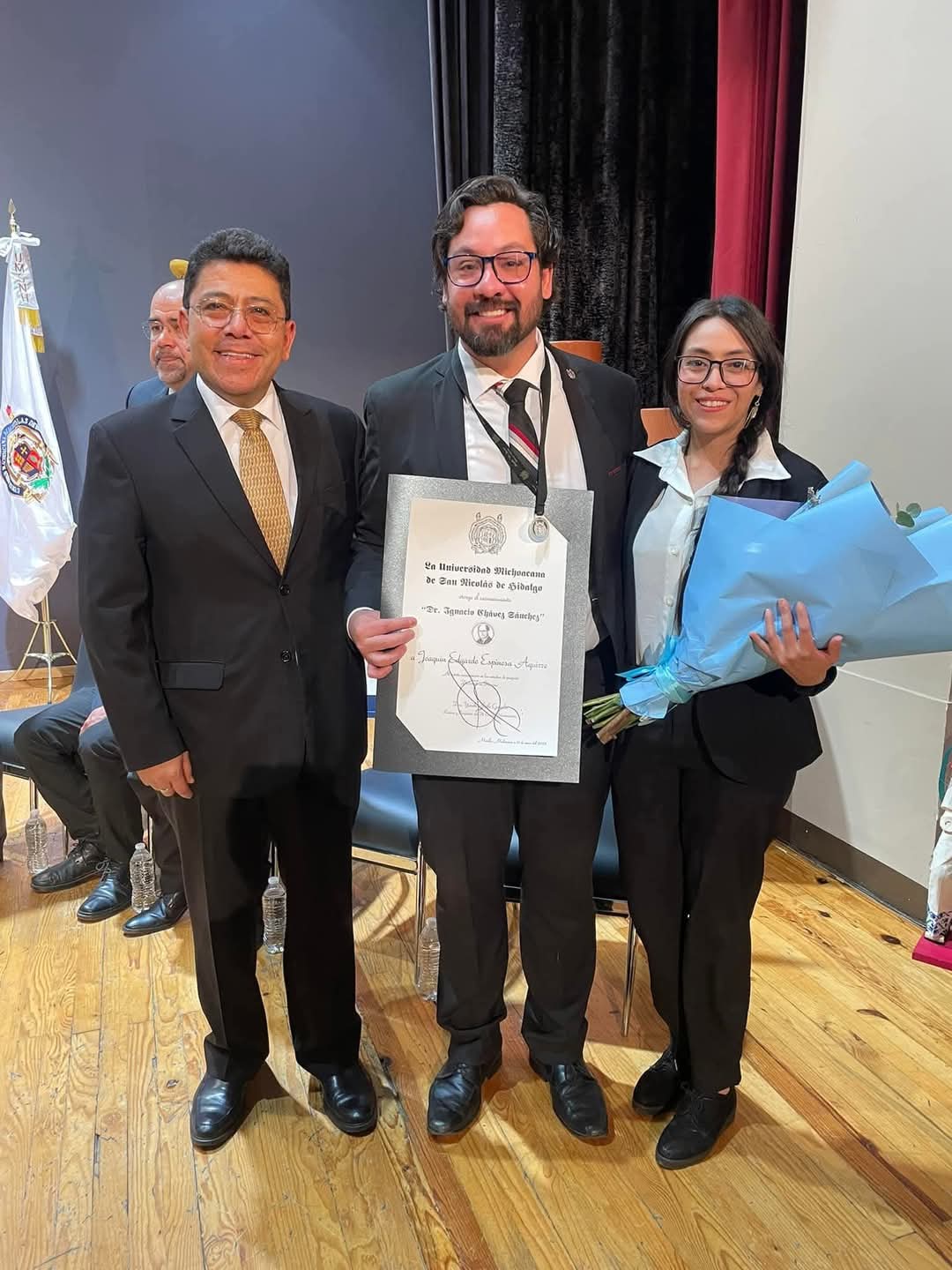 Morelia, Michoacán.- El docente Joaquin Espinosa Aguirre del Colegio de Estudios Científicos y Tecnológicos del Estado de Michoacán (Cecytem) recibió la medalla Dr. Ignacio Chávez al mérito universitario, que otorga la Universidad Michoacana de San Nicolás de Hidalgo (UMSNH).