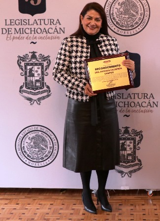 La distinción fue entregada por la parlamentaria del distrito XXIV de Lázaro Cárdenas, quien forma parte de la LXXV legislatura del Congreso local, donde se realizó la entrega del reconocimiento, en una emotiva ceremonia donde la titular del TecNM Morelia estuvo acompañada por su esposo, Jesús Rafel García Serna; sus hijos, Sofía Patricia García Calderón y Diego Alberto García Calderón; los directivos del ITM, Liliana Patricia Ferreyra Herrera, subdirectora de Servicios Administrativos; Carlos Fabián Escudero García, subdirector Académico; Omar Aguilar García, subdirector de Planeación y Vinculación y Elizabeth Zavala Cervantes, jefa del departamento de Comunicación y Difusión.