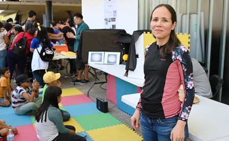 En la explanada principal del campus, los especialistas en astronomía y astrofísica, doctores Luis Alberto Zapata González, director del IRyA; Bernardo Cervantes Sodi, responsable del área de divulgación del IRyA, así como Jane Arthur, Jacopo Fritz, William Henney y Aina Palau, investigadores del instituto, explicaron a los asistentes qué son los eclipses, por qué suceden y cuál es la importancia de su observación mediante métodos seguros, a la vez que les compartían la imagen a través del telescopio.