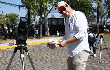 Asimismo, en el Planetario Planetario de Morelia “Lic. Felipe Rivera”, el doctor René Ortega Minakata, investigador del IRyA, coordinó las actividades de observación astronómica, como parte del Comité de Eclipses de Michoacán.