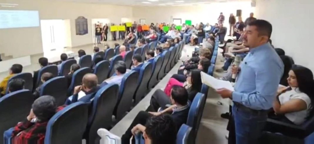 Ríspida fue la presentación de la propuesta de Reforma la Ley Orgánica de la Universidad Michoacana 2024 en la sesión ordinaria del Consejo Universitario que tuvo lugar esta media mañana, y donde se presentaron desde el inicio profesores del SPUM con pancartas que rezaban «no a la reforma a la Ley Orgánica» mostrándose en contra de su contenido porque lesiona sus derechos laborales, y donde consejeros no afines a Rectoría pidieron claridad y certidumbre a la autoridad universitaria sobre la pretendida aprobación a una reforma que, como va planteada, es a todas luces una intención de Rectoría actual de tener todo el control y desaparecer la división de ámbitos y poderes universitarios internos.
