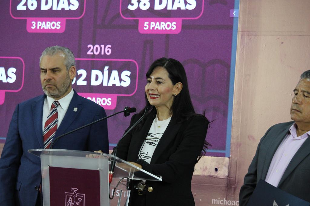 Por su parte, la secretaria de educación, Gabriela Molina recordó que anteriormente las protestas magisteriales eran motivadas por la falta de pago de salarios y prestaciones a los maestros michoacanos.