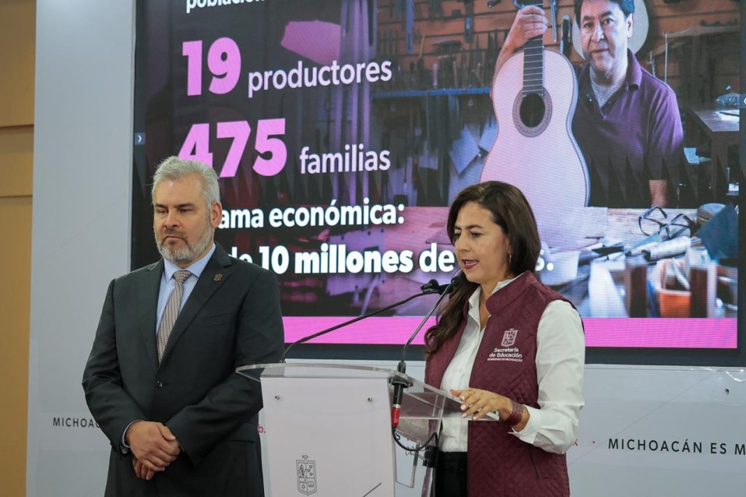Secundarias de Michoacán recibirán 10 mil 600 guitarras de Paracho a partir del 28 de octubre, como parte del programa “México canta y Michoacán toca con guitarras de Paracho”, detalló la secretaria de Educación del Estado (SEE), Gabriela Molina, junto al mandatario estatal en rueda de prensa.