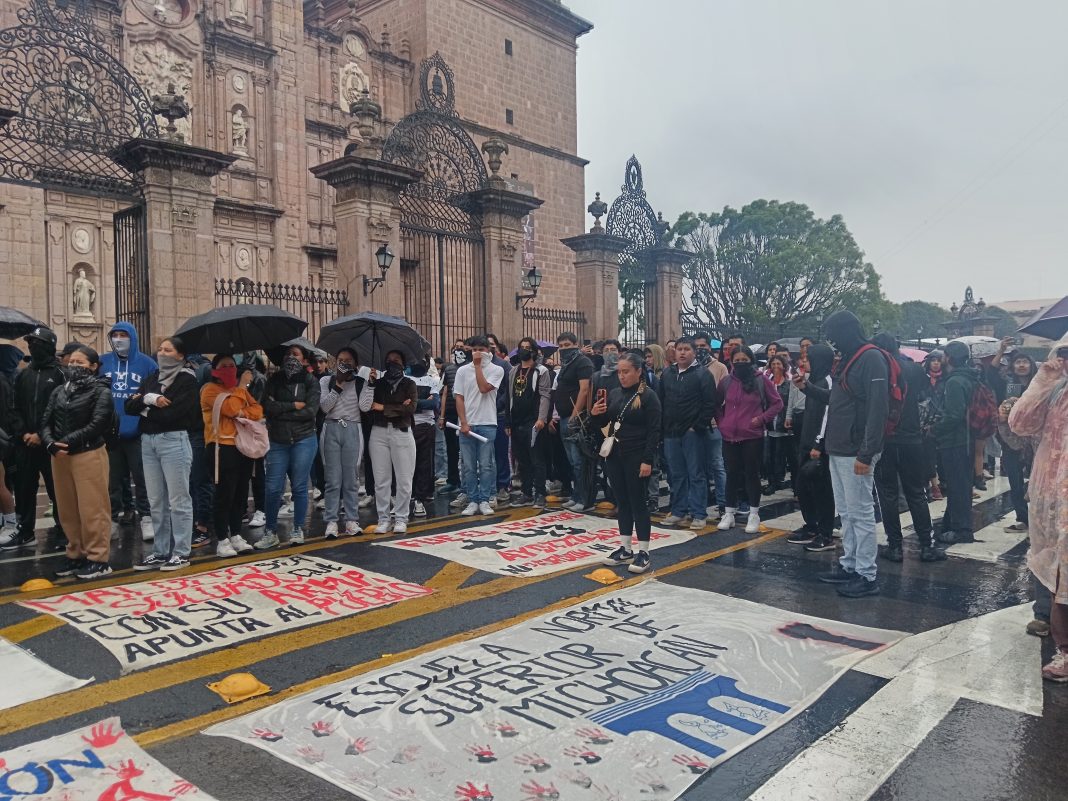 Con motivo de los 10 años transcurridos de la desaparición de los 43 normalistas de Ayotzinapa, jóvenes provenientes de distintas escuelas normales de Michoacán se reunieron para realizar una marcha sobre las calles de la capital michoacana.