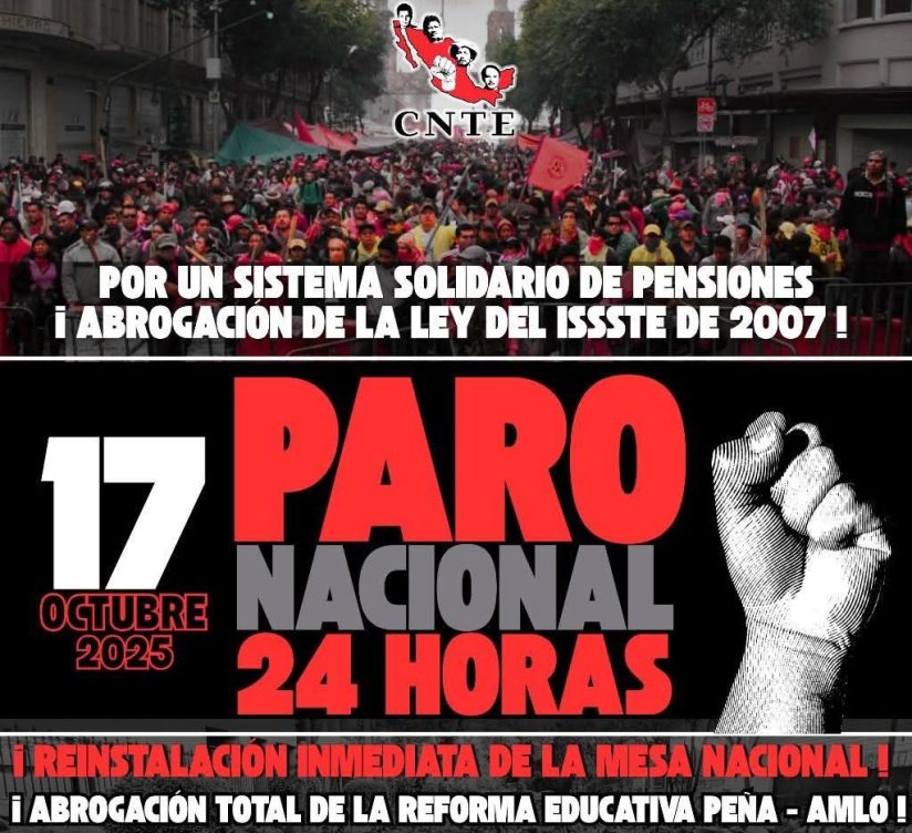 En exigencia de la reinstalación de la mesa tripartita y de la abrogación de la ley 2007 del ISSSTE, el magisterio centista irá a paro nacional el próximo 17 de octubre.