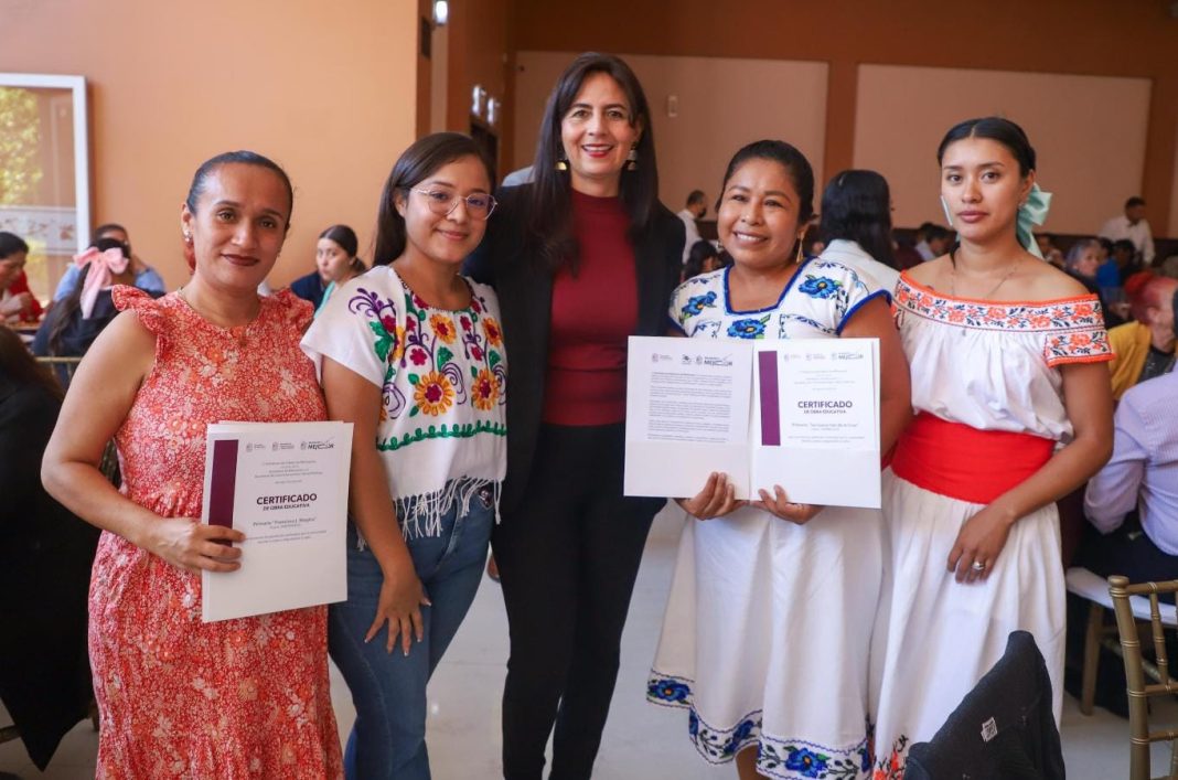 Uruapan, Mich.- La secretaria de Educación, Gabriela Molina, entregó certificados de obra a escuelas de las regiones de Uruapan, Los Reyes y Apatzingán, con una inversión de más de 188 millones de pesos en infraestructura educativa y equipamiento en beneficio de 30 mil estudiantes.