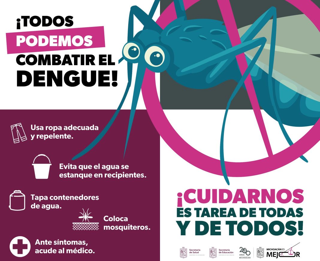 Morelia, Michoacán.- Para prevenir la propagación del dengue en los entornos escolares, la titular de la Secretaría de Educación del Estado (SEE), Gabriela Molina, emitió una serie de recomendaciones.