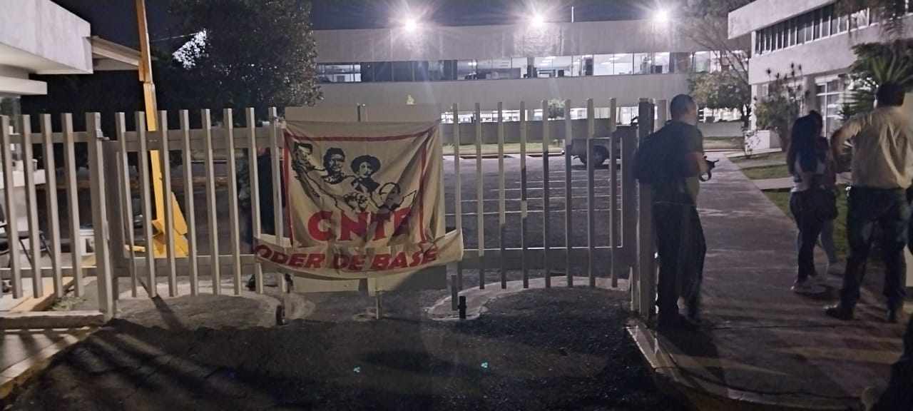 La Secretaría de Educación amaneció cerrada este viernes ya que a altas horas de la noche centistas del ala Poder de Base la tomaron, como medida de presión para que gobierno bedollista se acerque, dialogue y resuelva sus demandas incumplidas acumuladas desde 2019.