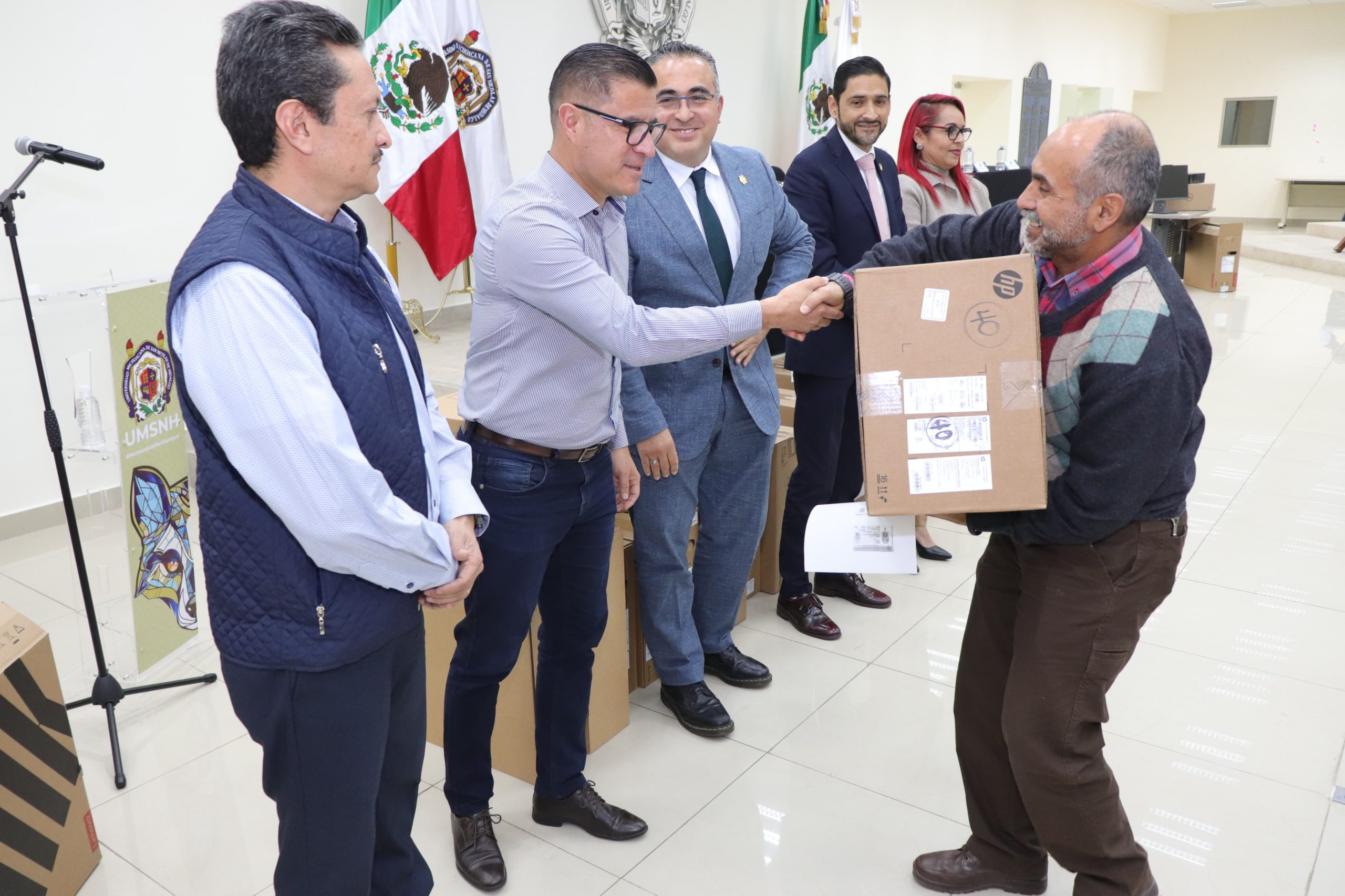 Durante la entrega de equipo de cómputo, estuvieron presentes directoras, directores, investigadoras, investigadores e integrantes del Consejo de Investigación de la UMSNH.