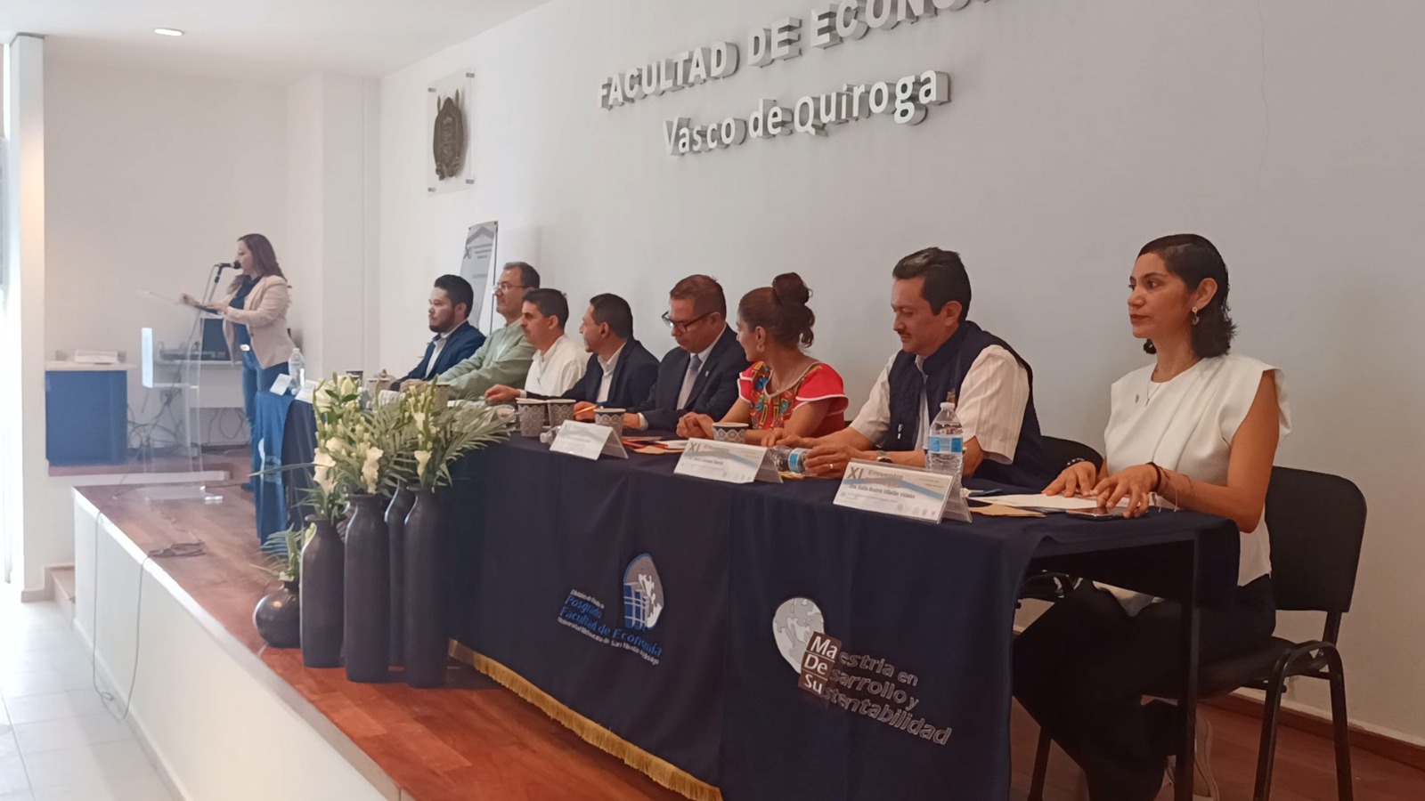 En la inauguración también estuvieron presentes, el coordinador de la Investigación Científica de la UMSNH, Jesús Campos García; la jefa de la División de Estudios de Posgrado de la Facultad de Economía, Katia Beatriz Villafán Vidales; el titular de la oficina de Representación de la Secretaría de Desarrollo Agrario, Territorial y Urbano en Michoacán, Miguel Ángel Sandoval; en representación de la Secretaría del Bienestar del estado, Carlos Eduardo Reyes y el director regional Centro-Occidente de CONAHCYT, Dante Ariel Ayala Ortiz.