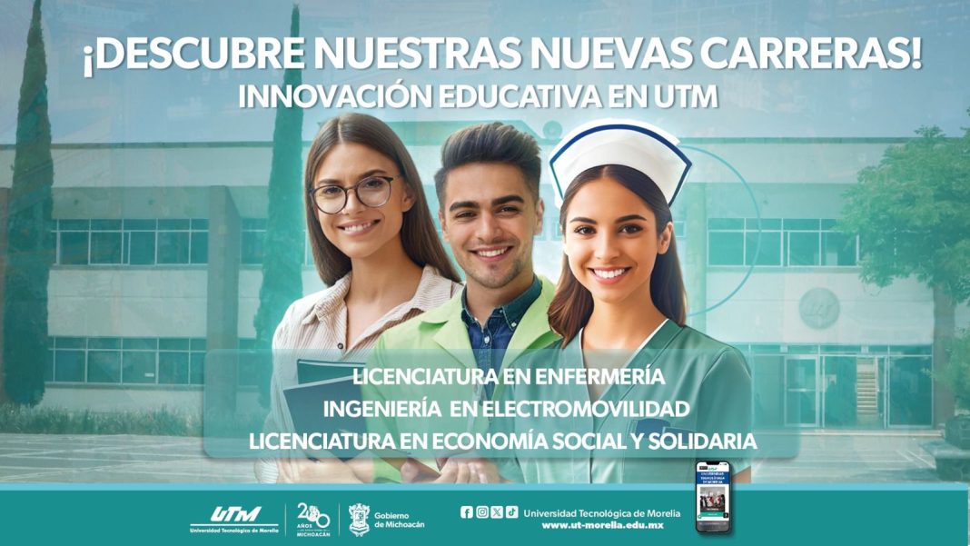 La Universidad Tecnológica de Morelia (UTM) anuncia la ampliación de su oferta educativa para el cuatrimestre que inicia en septiembre de 2024. Las nuevas carreras disponibles serán Enfermería, Electromovilidad y Economía social solidaria.