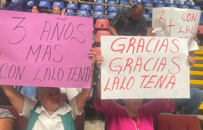 El líder sueumista no descartó integrar una planilla y contender por séptima vez consecutiva, mayoría luego de que la mayoría de los sumistas ahí presentes llevaron pancartas y cartulinas de apoyo con varias consignas, entre ellas la de «tres años más», solicitando que Tena Flores siga al frente del SUEUM.