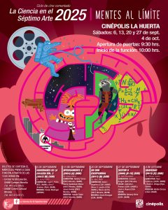 Este sábado arrancará el ciclo de cine comentado gratuito, la ciencia en la pantalla grande con sede en Cinépolis La Huerta en que durante cinco sábados se exhibirá una película, cuyo contenido posterior a la función será examinado por especialistas de varias ramas científicas de la UNAM campus Morelia junto con el público asistente.