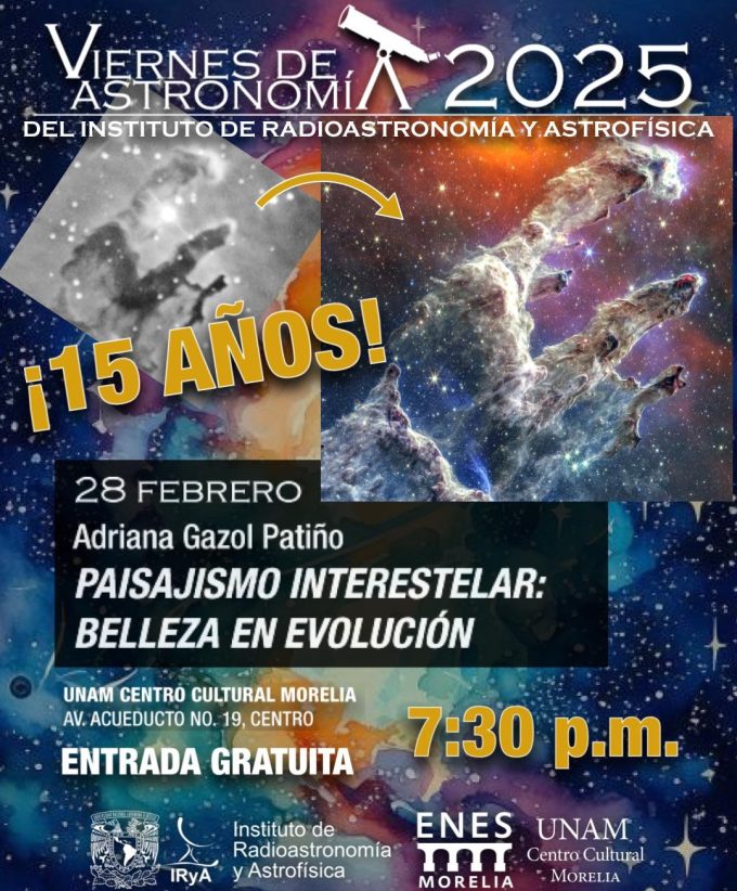 El Viernes de Astronomía del Instituto de Radioastronomía y Astrofísica (IRyA) de la UNAM, Campus Morelia, cumple 15 años este 2025, y lo festejamos con tres pláticas en las que exploraremos qué tanto hemos aprendido sobre el universo en este tiempo.