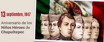 1847.- Se da la batalla de Chapultepec cuando las tropas norteamericanas atacan definitivamente y toman el Castillo de Chapultepec donde se encuentra el Colegio Militar. Sucumben gloriosamente sus defensores, jóvenes cadetes a los que la historia conocerá como los «Niños Héroes»: teniente Juan de la Barrera, Agustín Melgar, Juan Escutia, Vicente Suárez, Fernando Montes de Oca y Francisco Márquez. El batallón de San Blas, comandado por Felipe Santiago Xicoténcatl, enviado para reforzar la defensa del castillo fue totalmente anulado por el ejército invasor. Ya nada impedía que los estadounidenses marcharan hacia la ciudad de México, y así lo hicieron, aunque aún tuvieron que romper la resistencia de la garita de Belén y San Cosme, llegando a la capital el 14 de septiembre de 1847, en donde encontraron resistencia por parte de la población civil, y finalmente el 15 de septiembre de 1847, en el asta bandera del Palacio Nacional ondeó la bandera de las barras y las estrellas como recordatorio de que México había perdido la guerra y los territorios que Estados Unidos reclamaba.