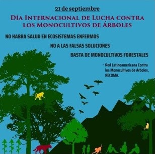 Día Internacional contra los Monocultivos de Árboles. Durante un día como hoy, cada año desde 2004, se busca generar conciencia sobre el impacto negativo de plantar grandes extensiones de un solo tipo de árbol. Esto genera un desequilibrio del ecosistema, provocando plagas y erosionando el suelo.