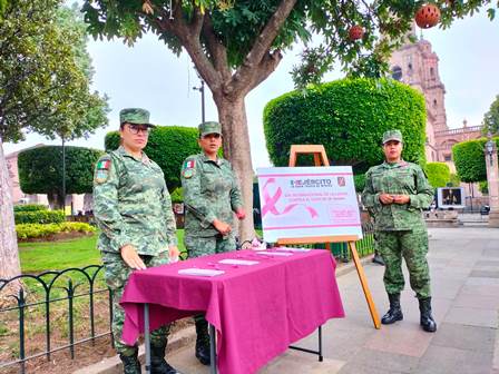 En este 19 de octubre de 2023, mujeres del Ejército Mexicano, pertenecientes a la 21/a. Zona Militar participaron activamente, instalando módulos de información y ofreciendo charlas al público en general con respecto al Día Internacional de la Lucha contra el Cáncer de Mama.