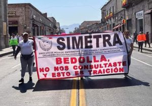 Al menos cuatro sindicatos del área Salud marchan este lunes en Morelia, como protesta y se concentran ya para marchar en cuatro puntos y rutas: fuera de Casa Michoacán rl SNITSS, en el monumento a Lázaro Cárdenas hacia Las Tarascas van el SIMETRA y el SETSAM, y de ese punto a Lázaro Cárdenas al Pípila el STDSSM.