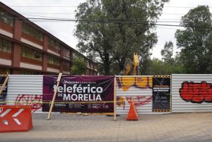 Quedaron suspendidas las obras de construcción del teleférico en la Secundaria Técnica 3, a cuyas afueras se abre un hoyo para instalar la torre.