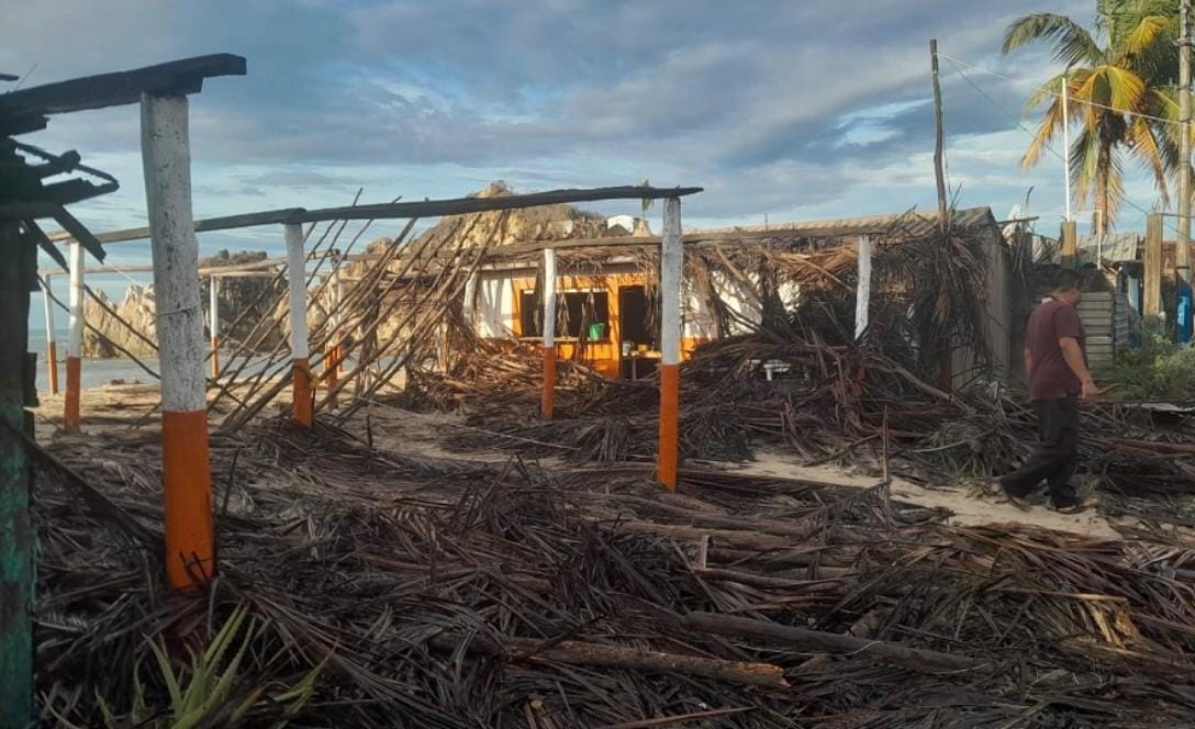 AQUILA, Mich.- Con diversas afectaciones terminó, la zona indígena nahua por las fuerte lluvia y vientos originados por el huracán Beatriz en su paso por la Costa de Aquila, donde además los daños en el hospital móvil de Maruata, se reportaron fallas en el sistema eléctrico, así como en la señal telefónica, varias viviendas dañadas principalmente en los techos de lámina y palapa, así como en las enramadas de servicio al turismo en las playas, y en techumbres de canchas públicas, árboles caídos, sin que por fortuna hubiera personas heridas.