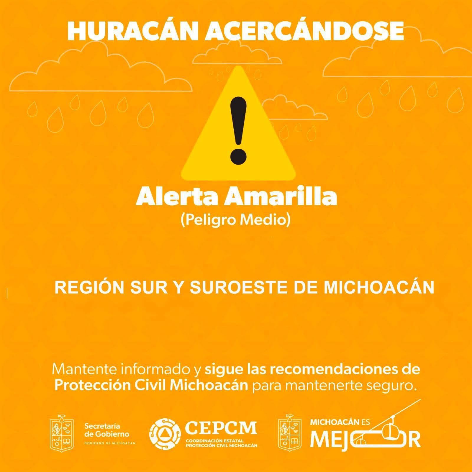 Ante cercanía de “Dalila”, Michoacán en alerta amarilla