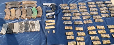 En total localizaron aproximadamente 583 cartuchos útiles, 21 cargadores y una pistola calibre .40 milímetros; mismos que fueron asegurados y llevados ante la autoridad competente, a efecto de llevar a cabo las diligencias correspondientes.