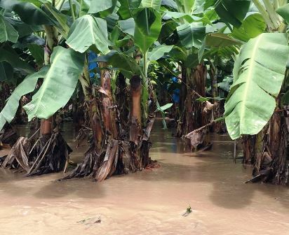 El funcionario consideró que aún no se puede hablar de pérdida de cultivos de plátano, toda vez que esta fruta se produce en condiciones de alta humedad, por lo que se puede rescatar si el exceso de agua escurre o se evapora en un corto plazo; consideró importante avanzar con los productores en la cultura de asegurar los cultivos para estar protegidos ante eventuales siniestros.