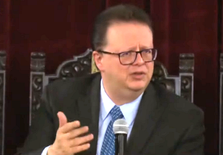 El magistrado brindó la conferencia ante estudiantes de la Facultad de Derecho y Ciencias Sociales de la Máxima Casa de Estudios bajo el eslogan «Elecciones y crimen organizado, El Gran Elefante en el Cuarto”.