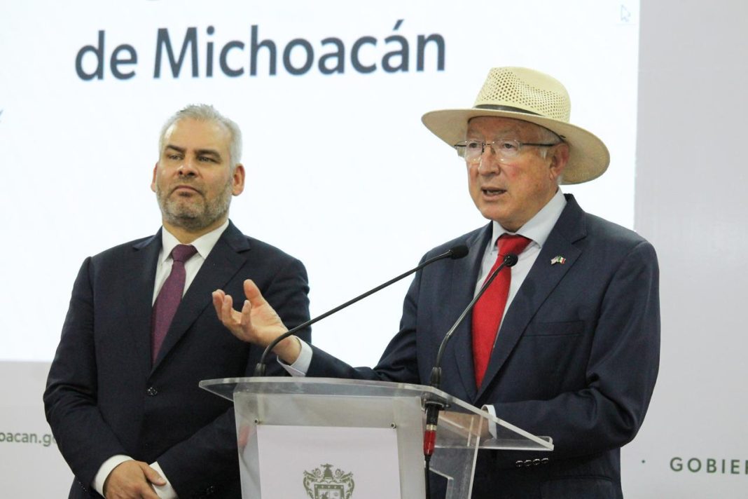 El Embajador de Estados Unidos en México, Ken Salazar, demandó un esquema de seguridad permanente y preventivo para garantizar la exportación fluida de productos michoacanos al vecino país del Norte.
