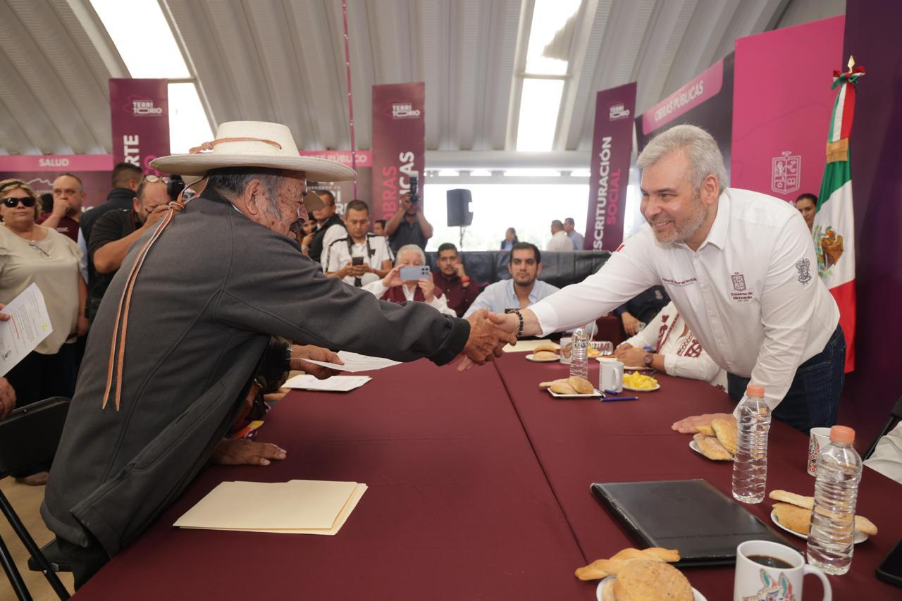 Lagunillas, Michoacán.- Como parte de su política de atención directa a la población michoacana, el gobernador Alfredo Ramírez Bedolla llevó la audiencia pública Gobernador en Territorio al municipio de Lagunillas, donde recibió solicitudes de la población en materia de salud, obras públicas, desarrollo urbano, campo, entre otros temas.
