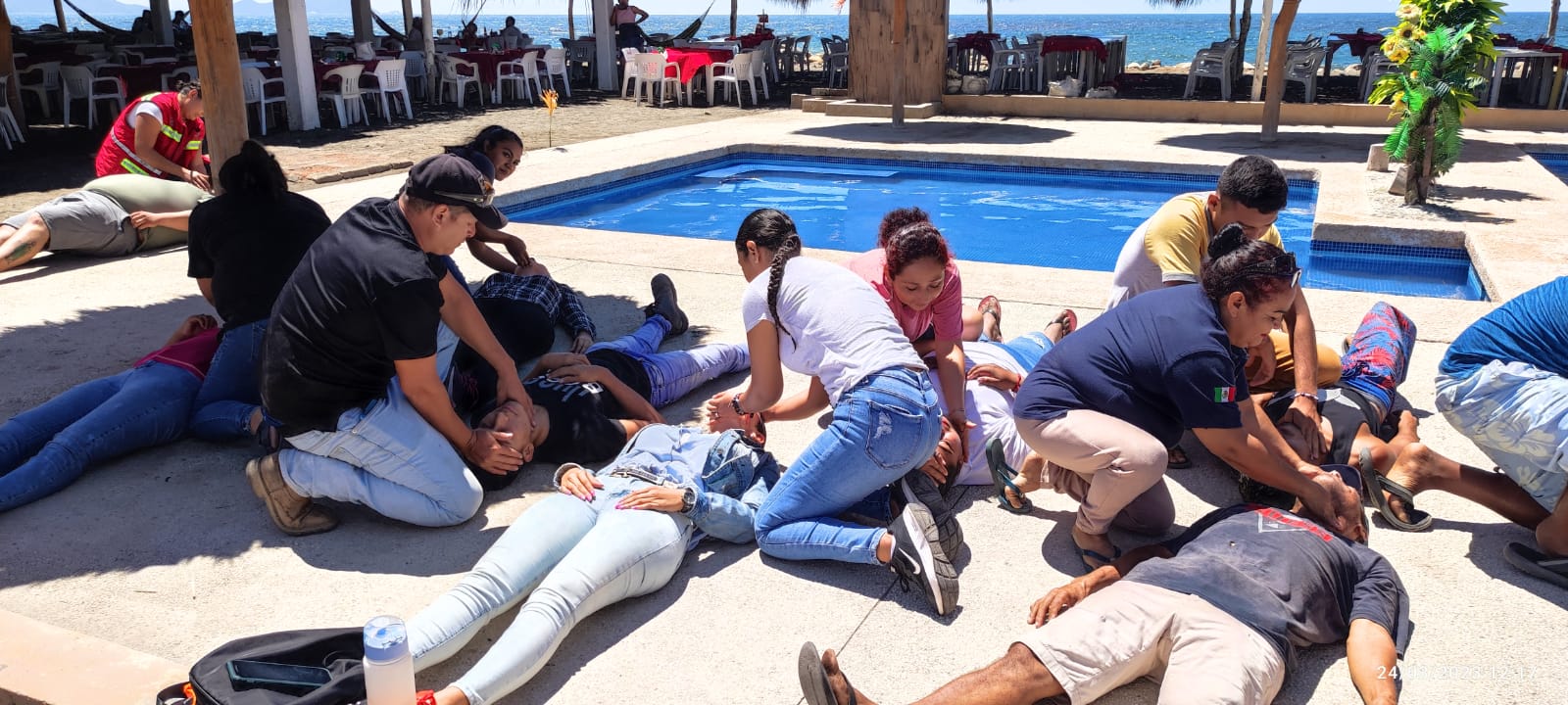 Este curso se desarrolló del 21 al 24, donde se capacitaron 133 personas del área educativa de los niveles de preescolar, primaria, secundaria y medio superior; así como personal de Seguridad Pública, Protección Civil Municipal, salvavidas de las playas de Coahuayana y enramaderos.