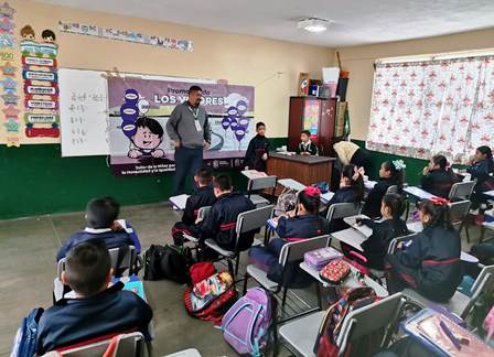 Explicó que las capacitaciones se impartieron en escuelas primarias urbanas y rurales, públicas y particulares, cinco en el turno matutino y una en el turno vespertino. Recibieron la capacitación alumnas y alumnos de 59 grupos, que van desde primero hasta sexto de primaria.