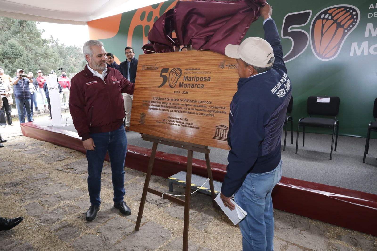 El gobernador Alfredo Ramírez Bedolla destacó que tan solo en la Reserva de la Biosfera de la Mariposa Monarca, ubicada al oriente de Michoacán en los límites con el poniente del Estado de México, se establecieron tres colonias del lepidóptero ocupando 1.217 hectáreas de bosque.