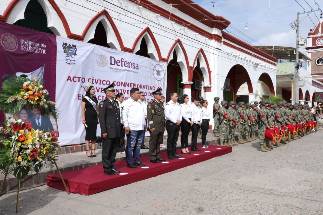 Las actividades fueron encabezadas por el general José Francisco Terán Valle, comandante de la 43 Zona Militar de Apatzingán, e iniciaron con un acto cívico en el Jardín San Francisco de Asís, donde se rindió un homenaje póstumo a la presidenta municipal, Martha Laura Mendoza Mendoza y a su esposo, destacando su legado de servicio y compromiso con la comunidad.