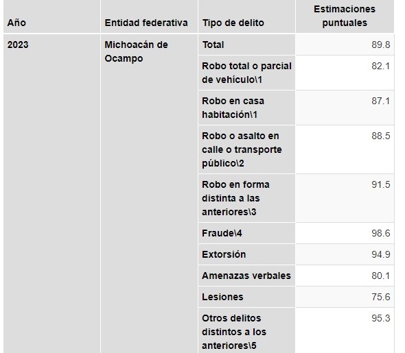 La Encuesta Nacional de Victimización y Percepción sobre Seguridad Pública (ENVIPE), muestra que el 19 por ciento de los hogares en Michoacán fueron afectados por algún delito de robo.