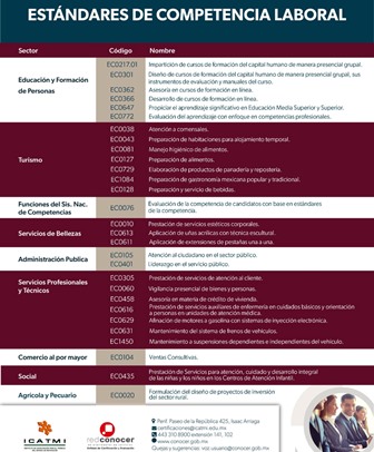 El Instituto de Capacitación para el Trabajo del Estado de Michoacán (Icatmi), invita a la población interesada a certificar sus conocimientos en cualquiera de los 29 Estándares de Competencia Laboral, de los cuales 12 son nuevos y avalados por el Consejo Nacional de Normalización y Certificación de Competencias Laborales (Conocer), dependiente de la Secretaría de Educación Pública (SEP).