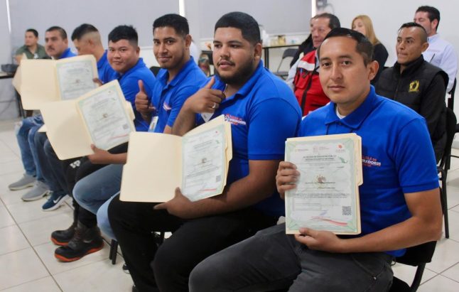 Zamora, Mich.- El Instituto de Capacitación para el Trabajo del Estado de Michoacán (Icatmi), a través de su director general Marco Antonio Flores de la Torre, certificó a 44 alumnos del Grupo Merza en Zamora, egresados de la cuarta generación del Centro de Capacitación de Operadores de Carga Federal (Cetransporta), entregándoles sus constancias como operadores profesionales de camiones de carga.