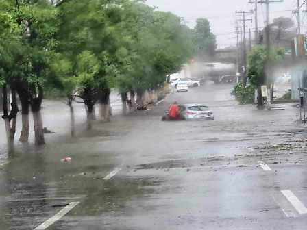 Lázaro Cárdenas, Mich.- Las lluvias ocasionadas por el huracán Beatriz de categoría 1, localizado frente la costa de Michoacán, comienzo a afectar algunos puntos del puerto de Lázaro Cárdenas.