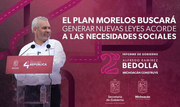 Lo anterior en referencia a que el Plan Morelos, dijo, considera importantes y trascendentes principios y temas de interés y beneficio social, tales como la educación, los derechos ambientales, reformas políticas y reformas al Poder Judicial, así como los derechos de las mujeres y los derechos sociales para el bienestar, entre otros.