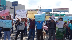 Como parte de las movilizaciones este viernes comuneros bloquearon el libramiento frente al Poder Judicial de la Federación en Morelia y la carretera federal costera 200, para exigir que la autoridad determine la propiedad de sus tierras ante los pequeños propietarios que son en su mayoría presta nombres de delincuentes y políticos que quieren quedarse con la zona.