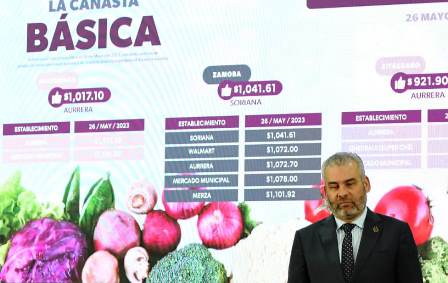 En rueda de prensa encabezada por el gobernador, Alfredo Ramírez Bedolla, el secretario de Desarrollo Económico, Claudio Méndez Fernández informó que la inflación alimentaria continúa a la baja, ya que en el lapso comprendido de octubre de 2022 a abril de 2023 ha disminuido 4.7 por ciento.