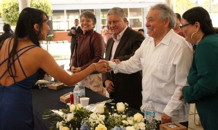 Por su parte, el padrino de generación invitó a los egresados a no detener su preparación académica, pues dijo, para el cambio tan urgente que la sociedad requiere se necesita gente que se prepare y participe en la lucha por mejorar las condiciones sociales, agregando que en el México actual no todos tienen el privilegio de continuar con sus estudios; “la mayoría de la gente no tiene estudios superiores, terminan a duras penas la primaria o la secundaria y se van a contratar como asalariados, lo que dificultará que mejoren sus condiciones de vida”, enfatizó.
