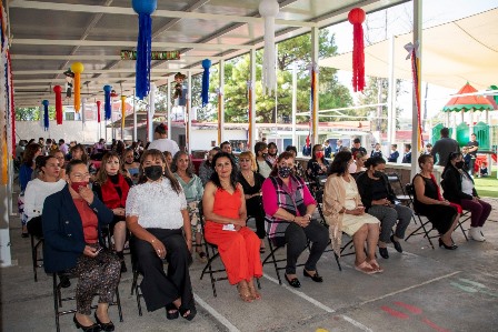 En su intervención, la directora del centro, Dulce María Garibay Madrigal, señaló que, la educación inicial juega un papel importante en la formación de las niñas y niños, por lo que, desde el Centro de Atención Infantil se fortalece el desarrollo y aprendizaje, así como los valores.