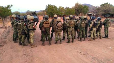 Apatzingán, Mich.- La Secretaría de la Defensa Nacional a través de las comandancias de la XII Región Militar y 43/a. Zona Militar, en el marco de la Estrategia Nacional de seguridad Pública y la política de Cero Impunidad del gobierno federal, ha desplegado 400 elementos del Ejército Mexicano para reforzar la seguridad, coadyuvar a preservar y garantizar la libertad, el orden y la paz pública en las comunidades de Llano grande, Las Bateas y El Tepetate del municipio de Apatzingán.