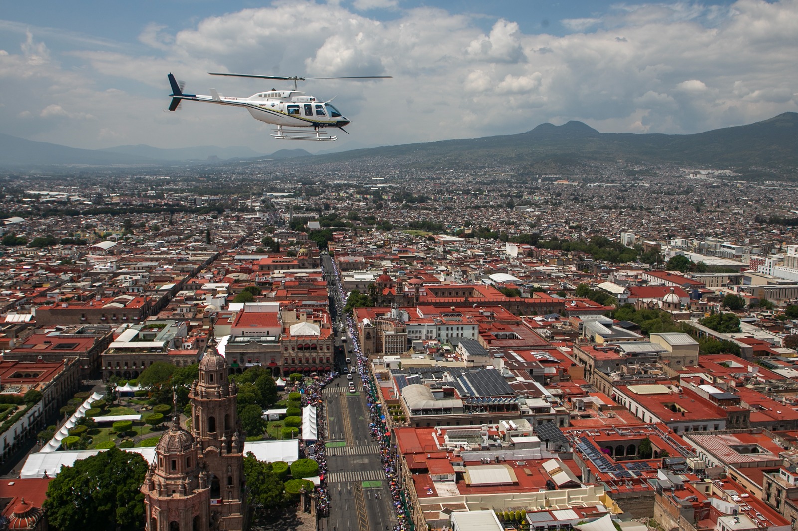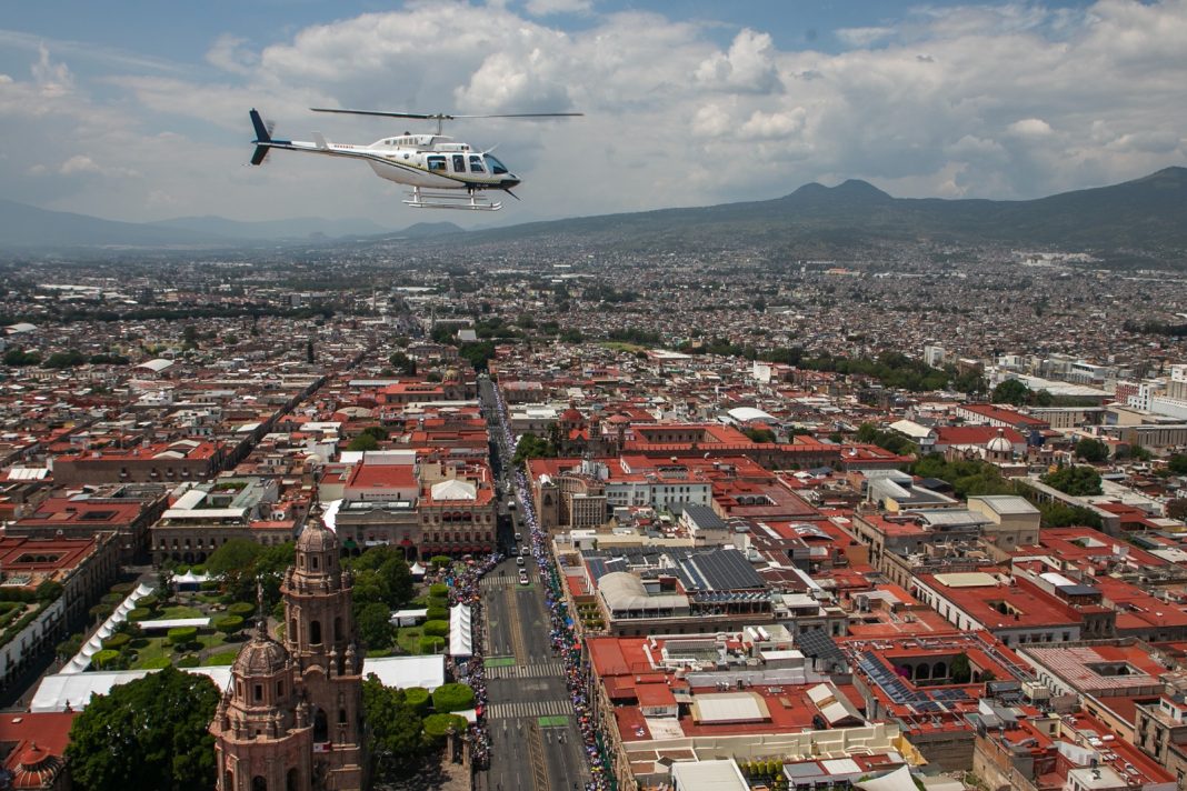 Morelia, Michoacán.- Por primera vez en su historia, la Dirección de Servicios Aéreos de la Secretaría de Seguridad Pública (SSP) realizó un vuelo en escuadrilla de 3 helicópteros durante el desfile cívico-militar de este 30 de Septiembre, conmemorativo al 258 Aniversario del Natalicio del Generalísimo José María Morelos y Pavón, en Morelia.